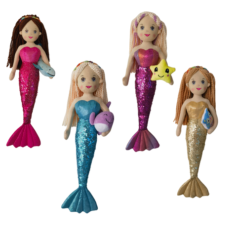 Nueva llegada 45CM Sparking Fashion Plush Mermaid Doll con animales marinos en la mano Girl Gift Mermaid Plush Toy Venta caliente