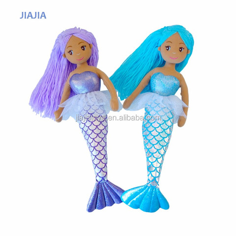 Gran oferta, muñeca de trapo hecha a medida, la mejor niña hermosa, sirena de peluche, cola de pelo púrpura brillante, juguete suave para niñas